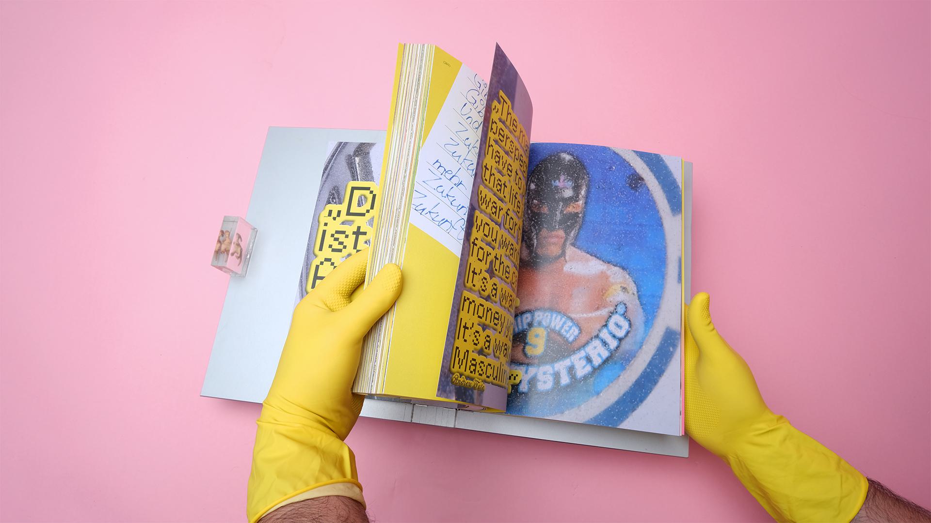 The combination of resin objects and quotes creates a visually engaging contrast that is sometimes humorous, sometimes serious. These objects appear not only in the editorial but also on the book cover as tangible relics of a complex era.